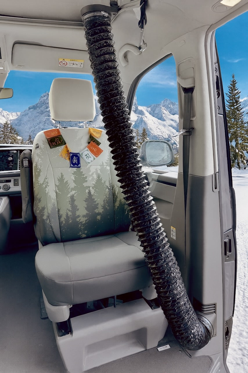 Dieses praktische Set leitet warme Luft gezielt ins Aufstelldach deines VW California (T5, T6, T6.1) – damit es auch an kalten Nächten im oberen Bettbereich angenehm bleibt.