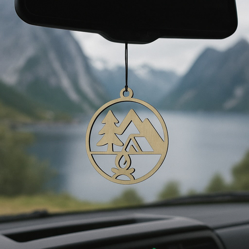 Diese liebevoll gelaserten Holzanhänger bringen die Ruhe und Schönheit der Natur direkt in deinen Camper, an deinen Rückspiegel oder in dein Zuhause. Ob Berge, Wald, Sonnenaufgang oder Campingszene – jedes Motiv ist klar, minimalistisch und dennoch detailreich gestaltet.