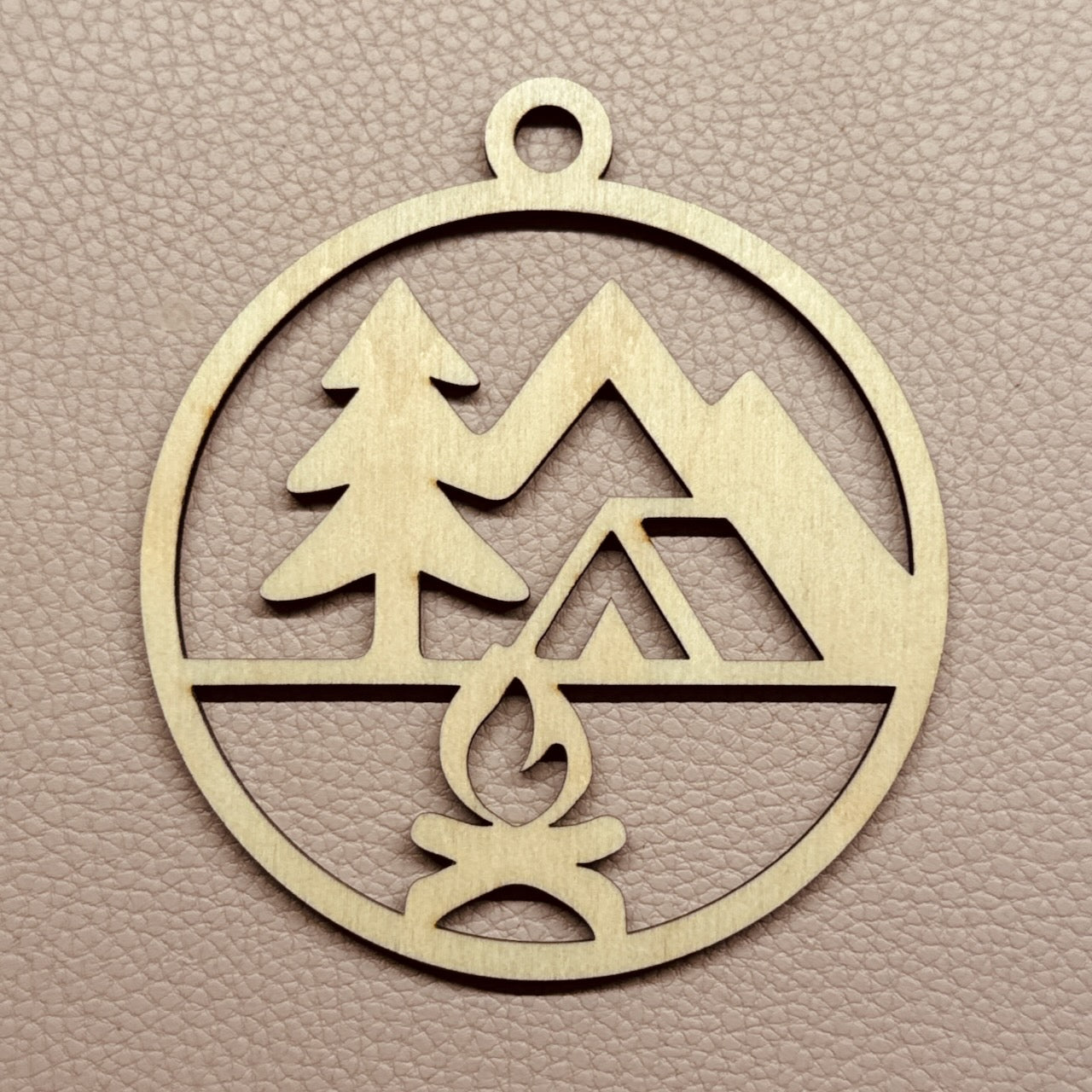 Holzanhänger „Outdoor Edition Zelt“ – Naturmotive für Camper, Vanlife & Zuhause